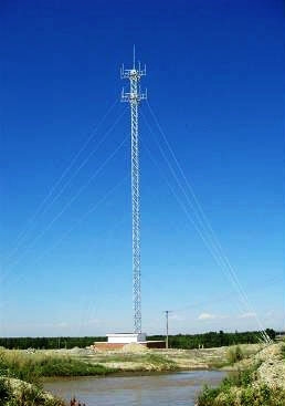 正三角形布置形式以及鋼絞線拉線固定方式,大大降低塔身自重 ;風(fēng)荷載系數(shù)小,基礎(chǔ)形式簡單,占地少(一般0.25m×0.25m),對承重物破壞較小,樓面基礎(chǔ)施工便利 ,可設(shè)計(jì)多層平臺,承載能力較高,可掛載多副天線和微波傳輸設(shè)備;在樓面上施工時(shí),由于樓面周圍維護(hù)結(jié)構(gòu)多,拉線固定方便,施工速度大大加快;在山坡上施工時(shí),可利用山坡優(yōu)勢進(jìn)行拉線固定,安裝便捷、施工速度快;構(gòu)件輕、占地少、對承載物的破壞小。