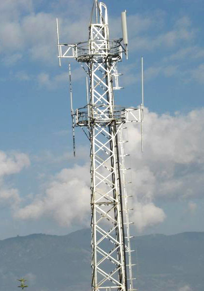 微波塔又稱為微波鐵塔、微波通信鐵塔,多建于地面、樓頂、山頂。微波塔承風能力強,塔架多采用角鋼材料輔以鋼板材料,也可全部采用鋼管材料組成,塔架各構件之間采用 螺栓連接,全部塔架構件在加工完畢后經過熱鍍鋅防腐處理。角鋼鐵塔由塔靴、塔身、避雷塔、避雷針、平臺、爬梯、天線支架、饋線架及避雷引下線等部件組成。